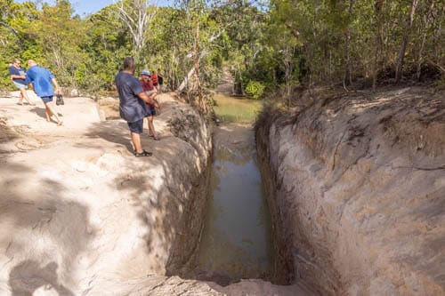On our way we will visit the Jardine River Crossing. Unfortunately the crossing is now closed so we will again be taking the ferry to continue south. We will again stop at Fruit Bat Falls for lunch and a swim before heading to the east coast for camp.